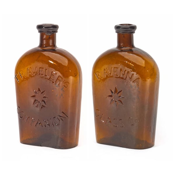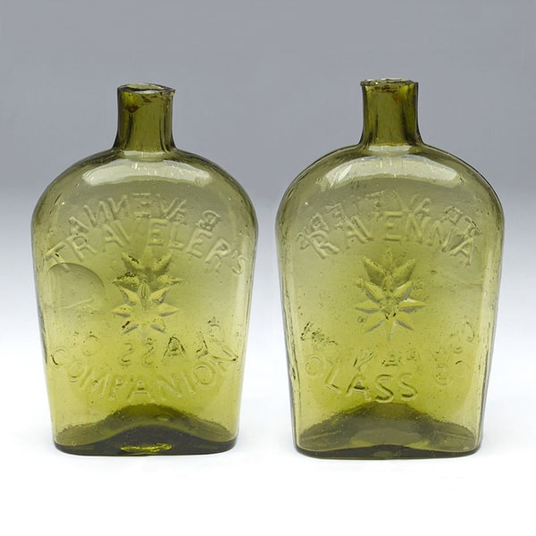 Star And “Traveler’s / Companion” – Star And “Ravenna / Glass Co” Flask