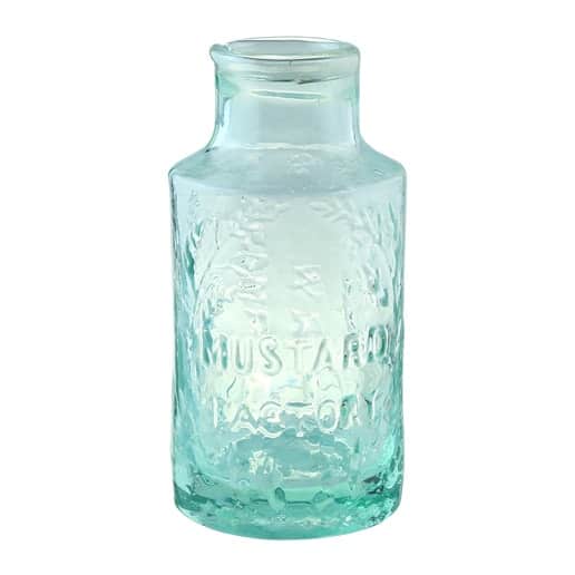 The first mustard bottles were vials imported from England and the term mustard bottle first started being used in colonial advertising around 1758. This replaced shipping mustard in casks which was more expensive and cumbersome. The first American bottles were probably manufactured by the Wistarburg Glass Works in the late 1770s in Salem County, New Jersey followed by Nicholson Glass Factory and Kensington Glass Works in Philadelphia and the New Jersey Glass Manufactory. Mustard consumption was growing and the need for bottles multiplied in cities and towns.