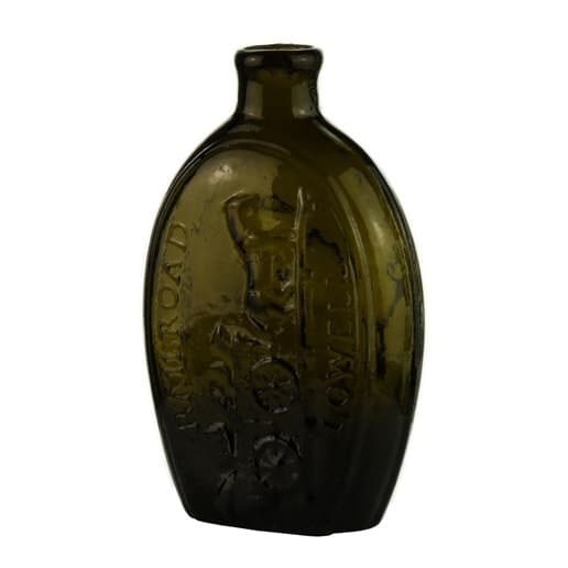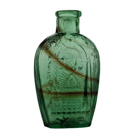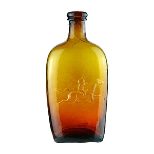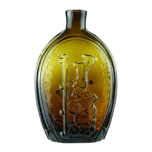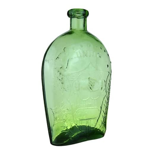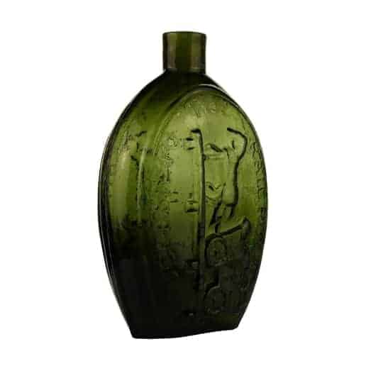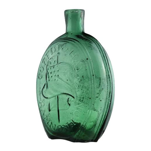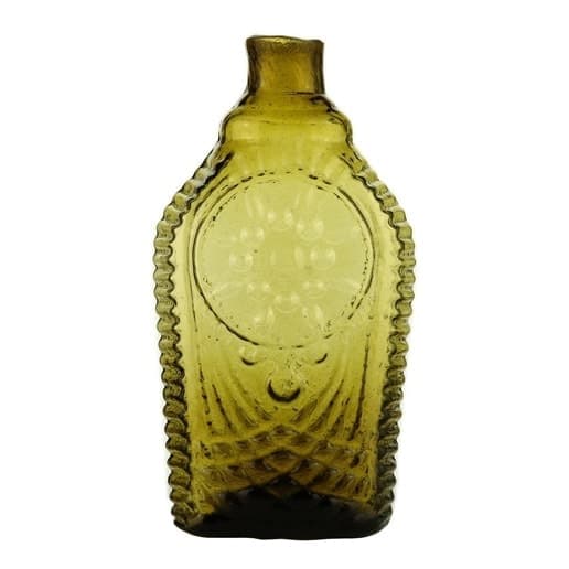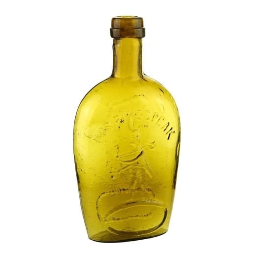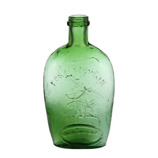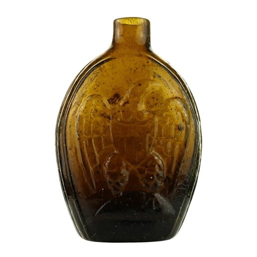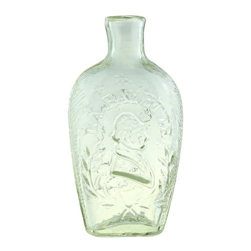 | Historical Flasks | Flasks were produced in general as a product container. It was the practice that retailers purchased the glass containers, sold them empty to customers and then sold them the contents. Those bottles were then used over and over since the cost of the bottle was more than anything that they put into them. Many flasks can be traced to a glasshouse, but not to any particular retailer. Flasks are more likely linked to historical figures or events. | View | |||