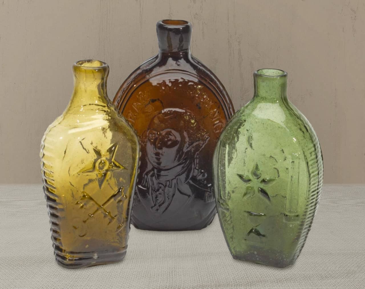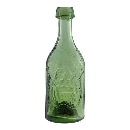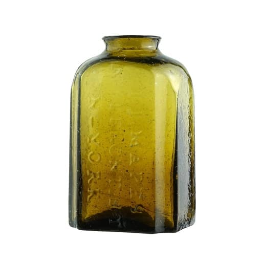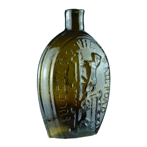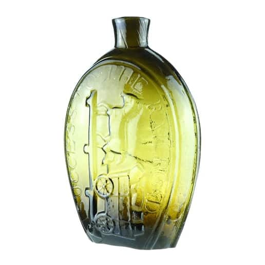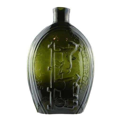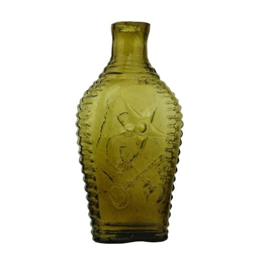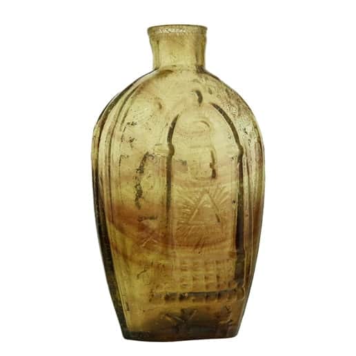 | Historical Flasks | Flasks were produced in general as a product container. It was the practice that retailers purchased the glass containers, sold them empty to customers and then sold them the contents. Those bottles were then used over and over since the cost of the bottle was more than anything that they put into them. Many flasks can be traced to a glasshouse, but not to any particular retailer. Flasks are more likely linked to historical figures or events. | View | |||