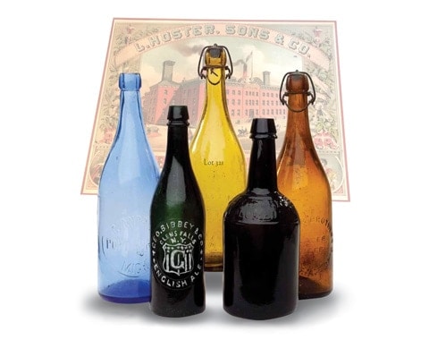 | Ales & Beers | Ales and Beers—and related Stout, Porter, and Weiss—are the yeast fermented products of various grains like malted barley and/or wheat, which was most common. All four of these very similar products are lumped together and referred to simply as “Ales & Beers” in this gallery. Beer brewing began in the United States during early colonial days when beer was consumed in large quantities on all sorts of occasions and during almost all meals. However, using bottles to contain beer was uncommon during that time as beer was dispensed from kegs in taverns and inns and bottles were relatively rare and expensive. | View | |||