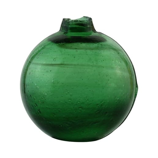 Primary Image: Auction Lot 689: Unembossed Gallery Ball, probably England, 1880 – 1900. Medium emerald coloration, 2-piece mold, rough sheared mouth, dia. 2 ¼”, near mint; (just a little minor haze or dullness one side of the ball, otherwise perfect). Great color, crude glass, with some streaks and swirl lines through glass. An uncommon gallery ball, scarce color. – The Ralph Finch Collection of Target Balls, Traps and Shooting Ephemera, An Absentee Auction in Six Parts – 2017-2019, John Pastor and American Glass Gallery