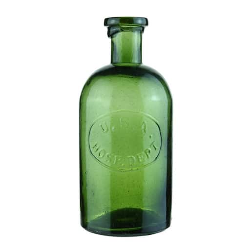 Primary Image: Forest green U.S.A. Hosp. Dept. bottle imaged on location by Alan DeMaison, FOHBC Virtual Museum Midwest Studio.